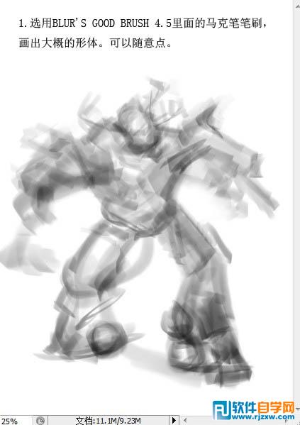 | 1、新建大小合适的文档,选择笔刷画出大概的体形,可以随意点。 |