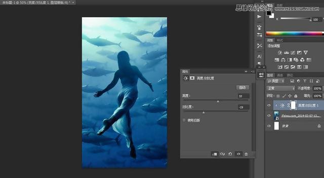 如果选入的是一张普通的照片,那么后期处理必不可少。这时,我稍微提亮一点自己的图片,并降低图片的对比度。对图片的处理总是因照片而异,没有必须要做的步骤,目的是在于将照片调整到刚刚适合自己将要做出的效果即可。