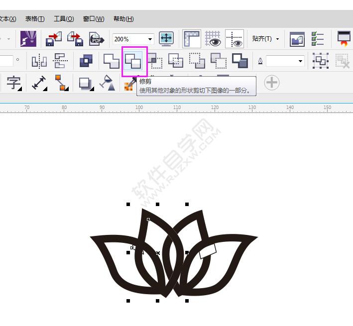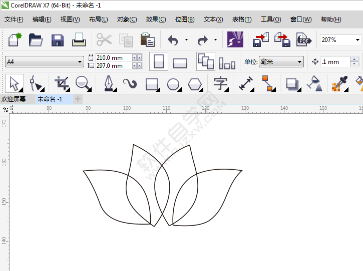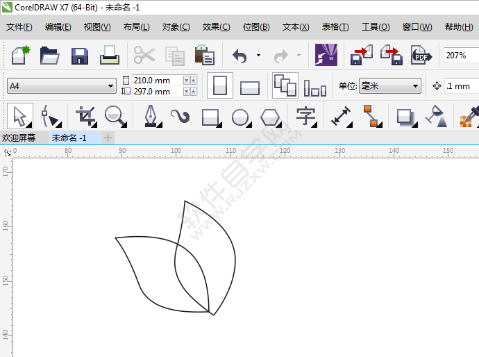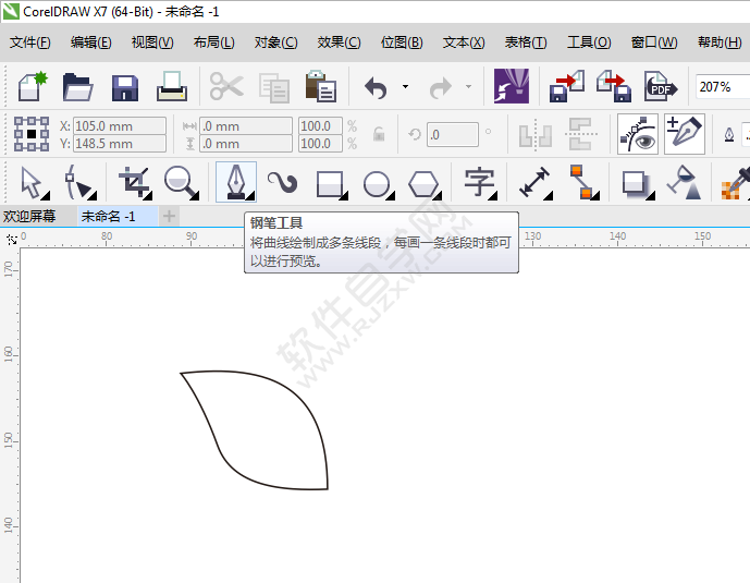1、打开CDR软件,使用钢笔工具,绘制一个花瓣出来,效果如下: