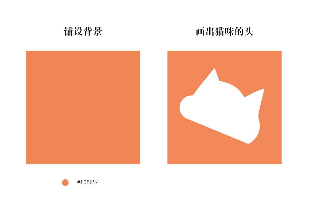 注意每只猫爪都是用矩形的变体,这样能让猫咪看起来有种简洁的抽象感,和写实的猫咪能拉开风格距离。