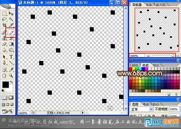 | 4、用一像素的铅笔在上面画乱点,均匀一些如下图。 |