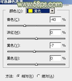 1、打开素材图片,创建可选颜色调整图层,对黄、绿、青进行调整,参数设置如图1 - 3,效果如图4。这一步给图片增加黄绿色。