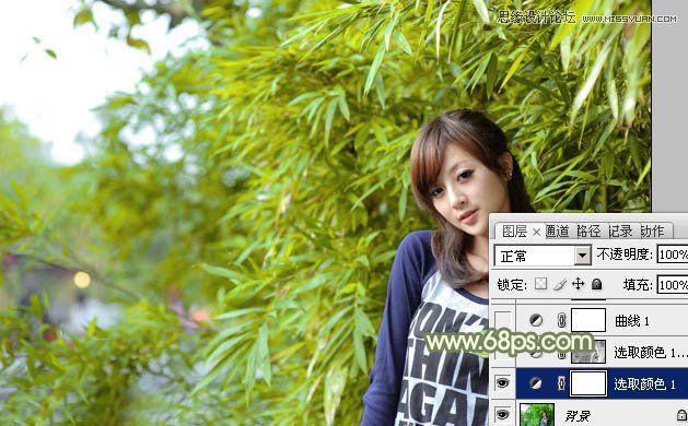 素材背景基本都是绿叶。的时候只需要把绿叶的颜色转为比较粉嫩的黄绿色,然后把暗部调淡,整体再柔化处理即可。