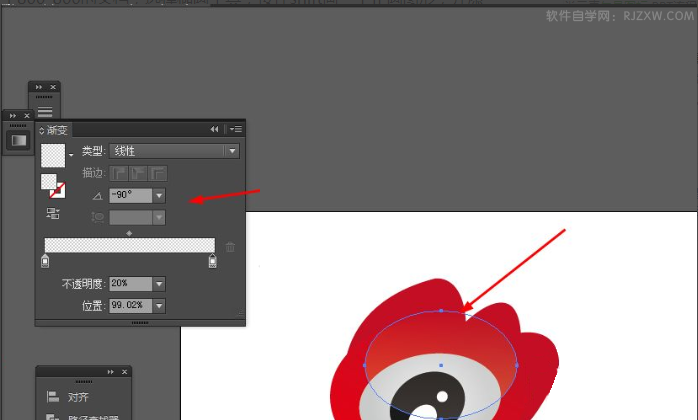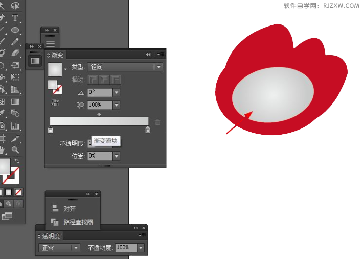 5、再绘制一个渐变填充椭圆出来,设置一下不透明度。