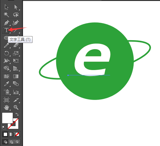2、点击文字工具,输入e字,然后把文字转创建轮廓。效果如下: