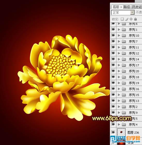 制作非常华丽的金色牡丹 日期:2026-01-06 14:57:06 栏目:软件教程 浏览:15 评论:0 最终效果 1、在制作之前需要把花朵的构造了解清楚,最好把花朵的每一片花瓣放到单独的一个组里面。这样方便修改和管理,需要完成的整体效果及图层参照如下图。 <图1> 上一篇:用WPS实现对称页边距功能 下一篇:Photoshop制作非常流畅的中国风水墨字效果教程 相关推荐 Photoshop调出室内人物照片流行的粉青色 礼物符号制作 chatgpt能不能做专业的股票分析 儿童插画,Illustrator设计色彩艳丽儿童插画图片教程 评论留言 我要留言 ◎欢迎参与讨论,请在这里发表您的看法、交流您的观点。 昵称:* 邮箱:* 网址: 内容: 取消回复