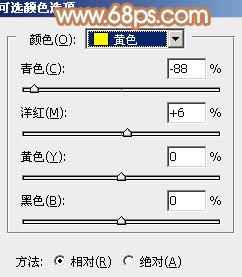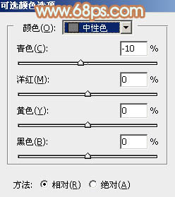 二、创建可选颜色调整图层,对黄、绿、中性色进行调整,参数设置如图2 - 4,效果如图5。这一步把背景部分的绿色转为橙黄色。