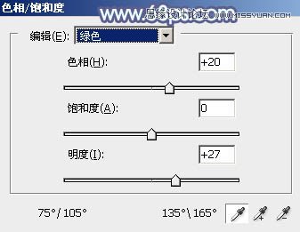 3、创建色相/饱和度调整图层,对黄色,绿色进行调整,参数及效果如下图。这一步给图片增加青色。