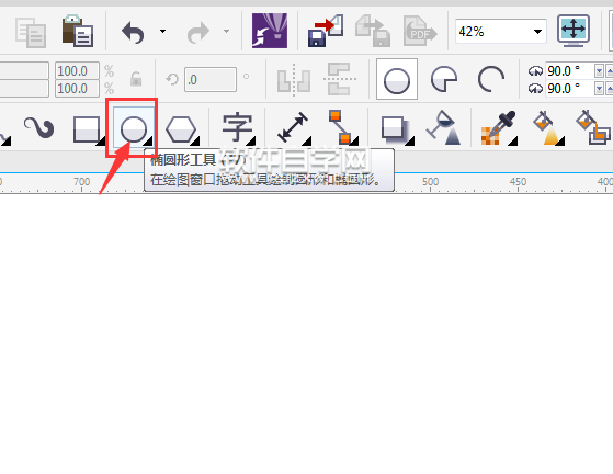 第1步、打开CDR软件,新建文档,点击椭圆形工具就可以开始画圆了。