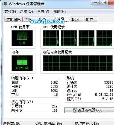 切换到性能选项卡,点击下方的资源监视器按钮。