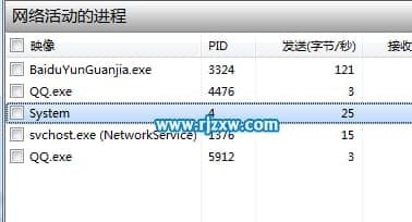如果觉得网卡的话可以在这里选择性关闭某些进程。在每一个进程后面的发送(字节/秒)就是进程的流量。