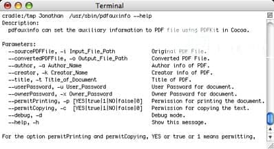 一、下载并解开压缩包以后,系统会自动安装pdfauxinfo,安装路径是/usr/sbin/pdfauxinfo。之后,你可以将它移到任意位置,但需要注意的是,Automator就不能像它这样随便放置在任何位置。