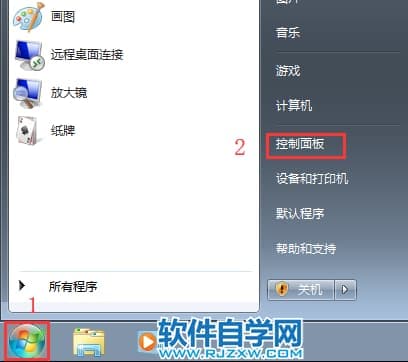 第1步、点击左下角的开始菜单,再点击控制面板。效果如下: