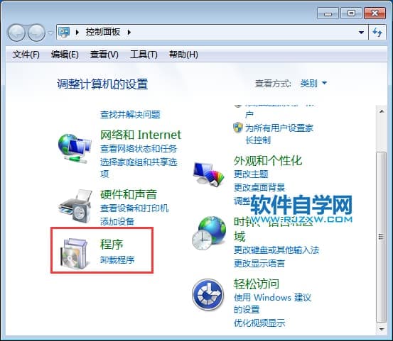 第2步、然后进入控制面板,点击程序。效果如下: