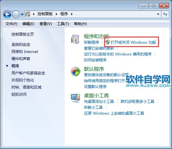 第3步、然后再程序里面,点击打开或关闭Windows功能。效果如下: