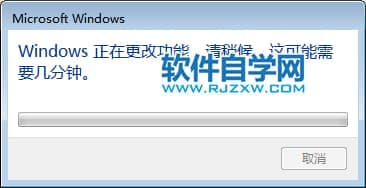 第5步、然后Windows就会正在更改功能,请稍候,这可能需要几分种。