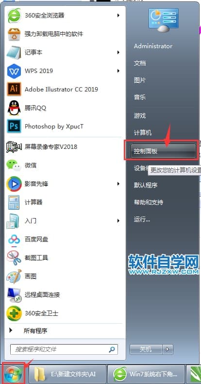 第1步、打开电脑,点击左下角的开始菜单,点击控制面板。