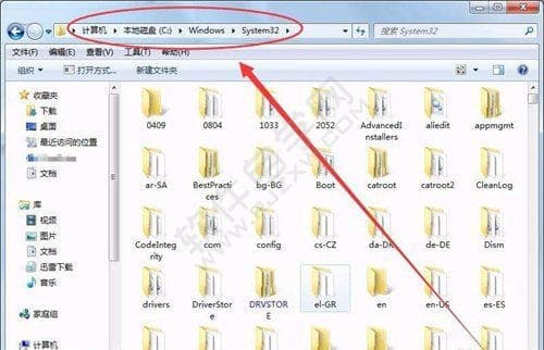 2、打开System32文件夹,文件夹路径为C:WindowsSystem32。