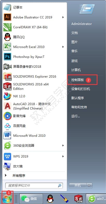 1、点击电脑左下角的开始,点击控制面板,效果如下: