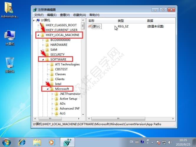 2、点击HKEY_LOCAL_MACHINE下面的SOFTWARE的MICROSOFT。