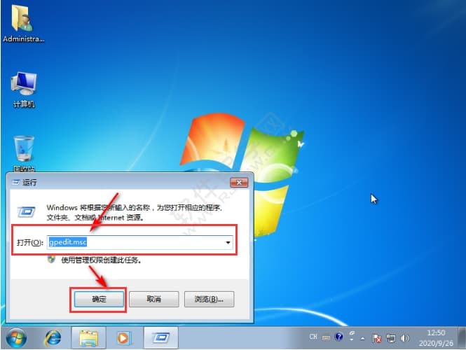 1、同时按下win+r键打开运行,输入”gpedit.msc”,点击确定。