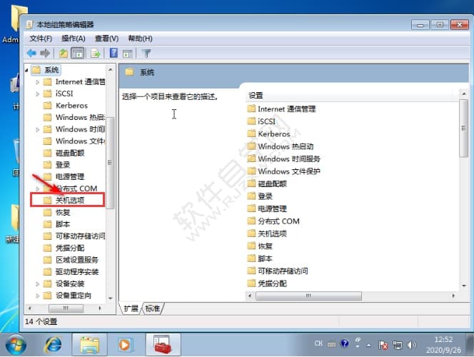 3、点击关机选项。