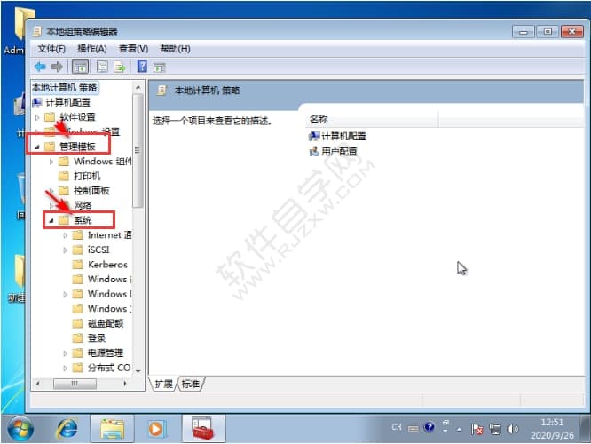 2、点击管理模板,点击系统。