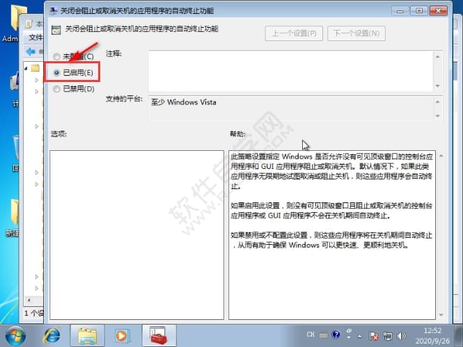 5、点击已启用,点击确定。