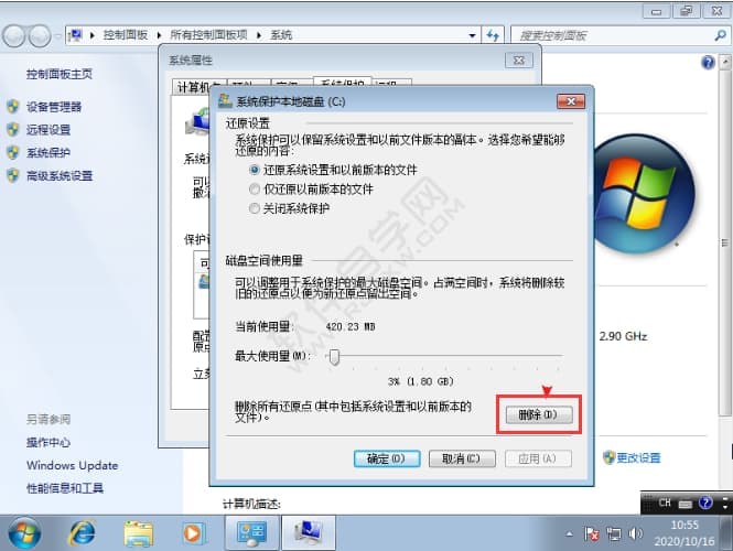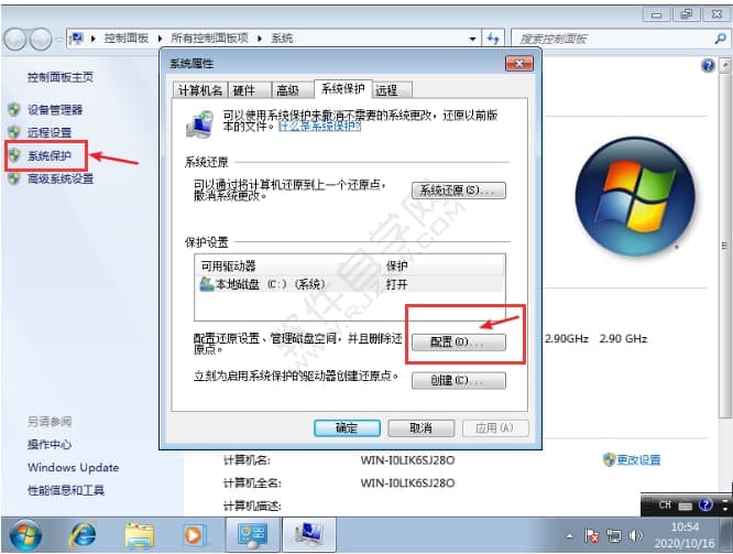 3、我们也可以右键计算机,选择属性,点击系统保护,点击配置选项,