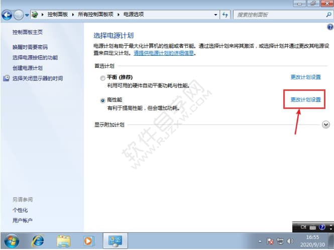 3、选择右边的优化计划,点击更改计划设置按钮。