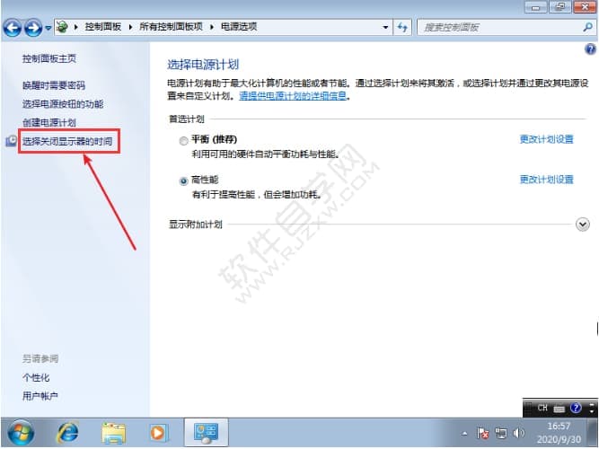 5、同时我们返回上个页面,选择“”选择关闭显示器的时间”按钮,