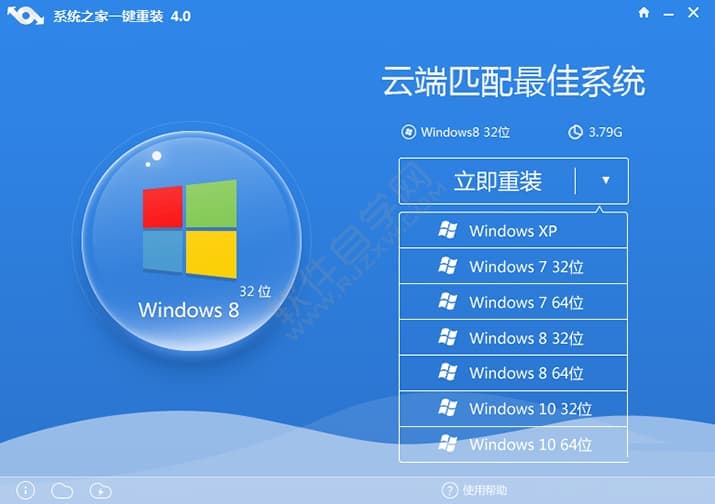 2、双击运行系统之家一键重装,在系统之家一键重装软件界面首页中选择win10 32位系统,进入下一步