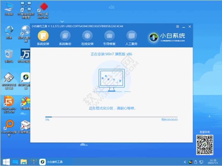 6、在 PE 系统中,小白装机工具就会自动进行安装系统,根据提示操作即可。
