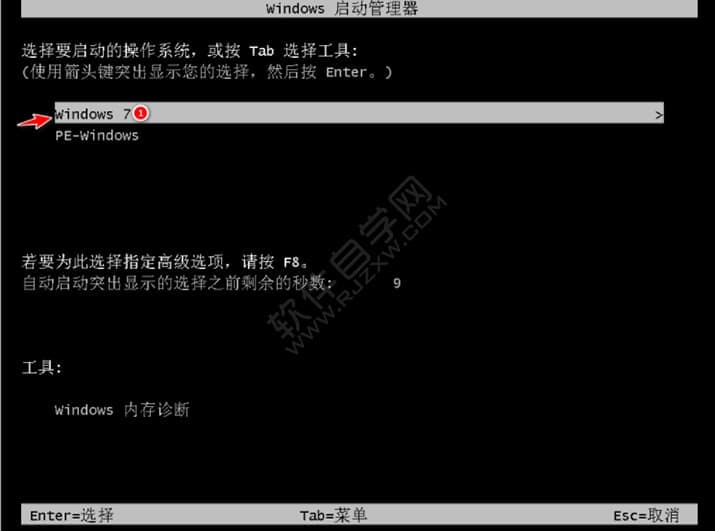 7、选择windows7回车进入。