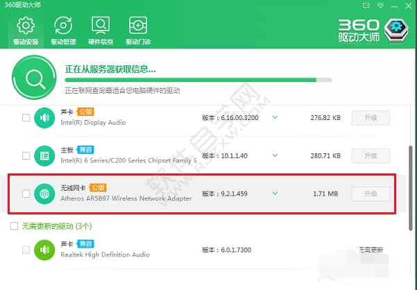 6、如果还不行,就用360驱动大师,升级一下无线网卡。