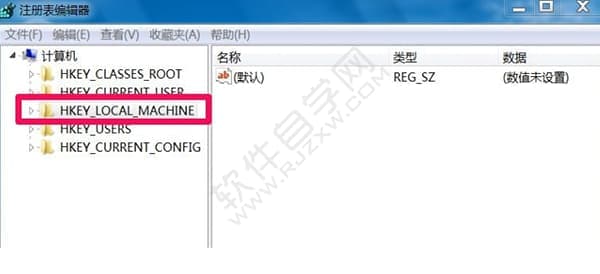 2、进入注册表编辑器,展开[HKEY_LOCAL_MACHINE]。