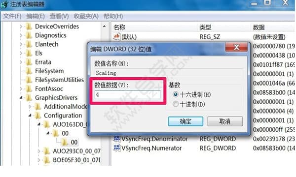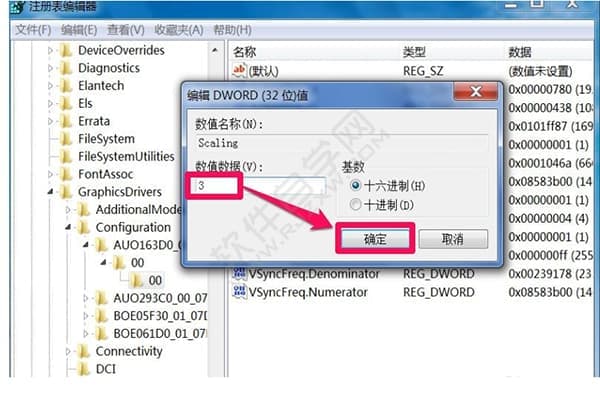 1、同时按下win+R键打开运行对话框,输入regedit,点击“确定”。进入注册机,进行查找目录SCALING。