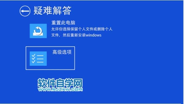 第1步、重启电脑,进入修复模式,选择“高级修复” ――“疑难解答”――“高级选项。