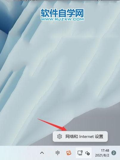 1、首先右击windows11任务栏上的网络,然后点击网络和internet设置选项