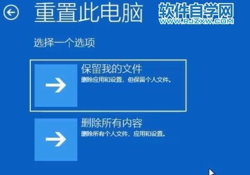 4、然后选择“保留我的文件”以避免重要文件丢失。