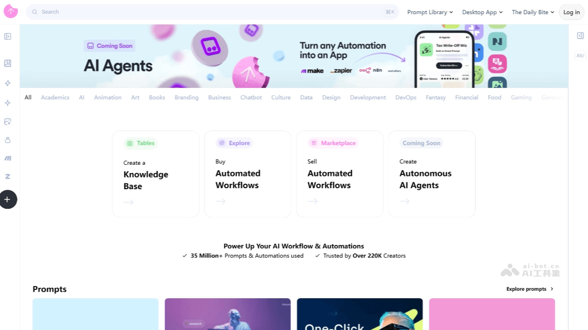 Snack Prompt 是专注于优化 AI 提示(prompts)的社区平台,帮助用户更好地使用 ChatGPT、Gemini 等 AI 工具。提供了丰富的提示库,涵盖写作、设计、商业、学术等多个领域,用户可以根据需求快速找到合适的提示并直接使用。Snack Prompt 注重社区互动,用户可以点赞、评论和分享提示,能关注其他创作者,形成一个互助的学习环境。支持个性化管理,用户可以创建、组织并保存自己的提示库,方便随时调用。Snack Prompt 提供 Chrome 插件,用户可以直接在 ChatGPT 中调用平台上的提示,提升了使用效率。