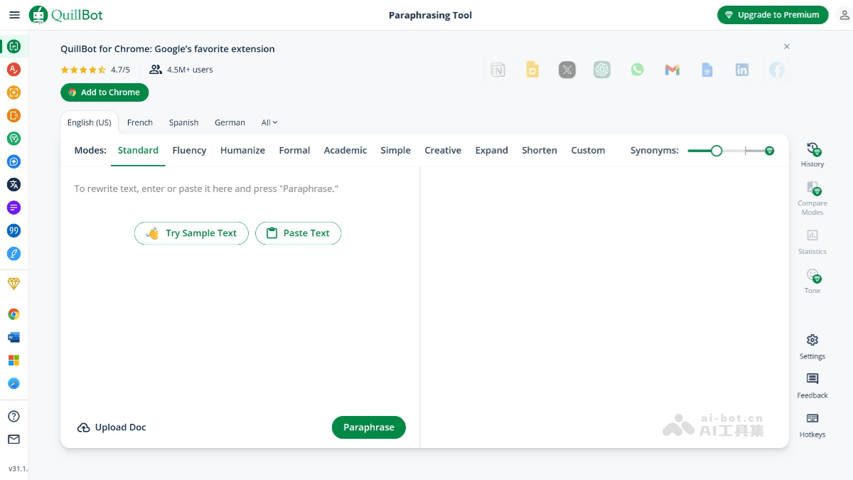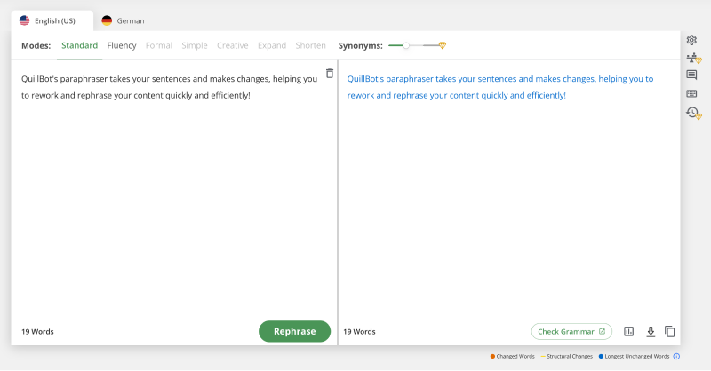 - 获取结果:点击“Paraphrase”或“Check”等按钮,等待QuillBot处理并获取结果。