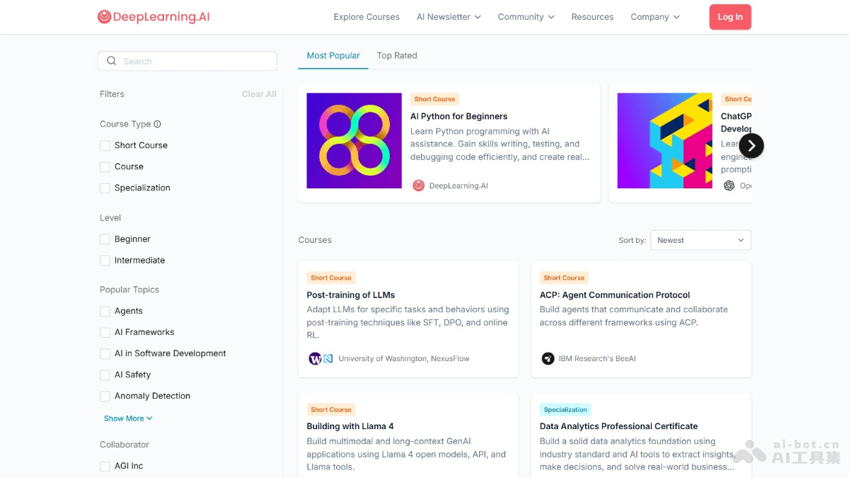 DeepLearning.AI 是人工智能领域知名专家吴恩达(Andrew Ng)创立的在线教育平台,提供高质量的机器学习和深度学习课程,帮助学习者从基础到高级逐步掌握 AI 技术。平台课程涵盖理论知识与实践应用,结合真实案例,适合不同水平的学习者。DeepLearning.AI 提供行业动态资讯、免费学习资源及与全球 AI 社区互动的机会,致力于培养更多 AI 人才,推动人工智能技术的普及与发展。