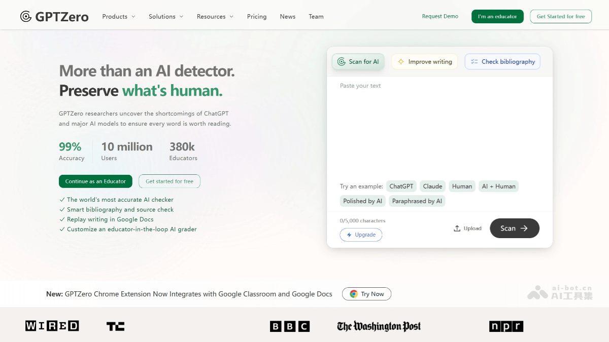 - 内容创作与媒体出版:内容创作者、编辑和记者可以用 GPTZero 来检测文章、报道或投稿是否由 AI 生成,确保内容的原创性和真实性。