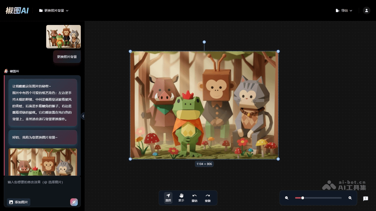 - 使用功能:选择椒图AI的相应功能(如人像美化、背景替换、风格转换等),通过自然语言描述需求,系统自动识别并完成修图任务。