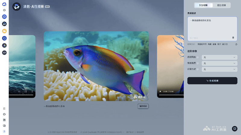 - 视频生成:智谱清影 具备AI视频生成能力,支持文生视频、图生视频两种模式。