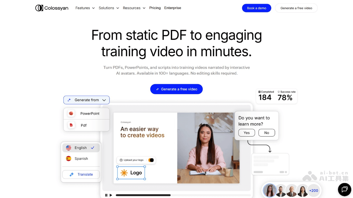 - 培训与教育:将培训材料(如 PDF、PPT)转换为互动视频,支持多语言,提高培训效率和参与度。