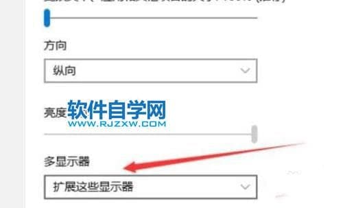 4、最后在右侧下拉找到“多显示器”并选择“扩展这些显示器”即可分屏。