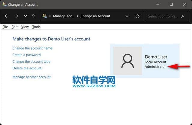 10、您现在将自动返回上一个屏幕,您可以在其中验证用户帐户现在是否具有管理员权限。
