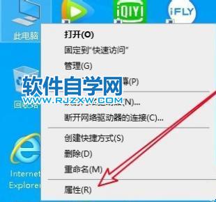 1、我们在Windows10系统桌面,右键点击屏幕上的“此电脑”的图标,在弹出菜单中选择属性的菜单项。
